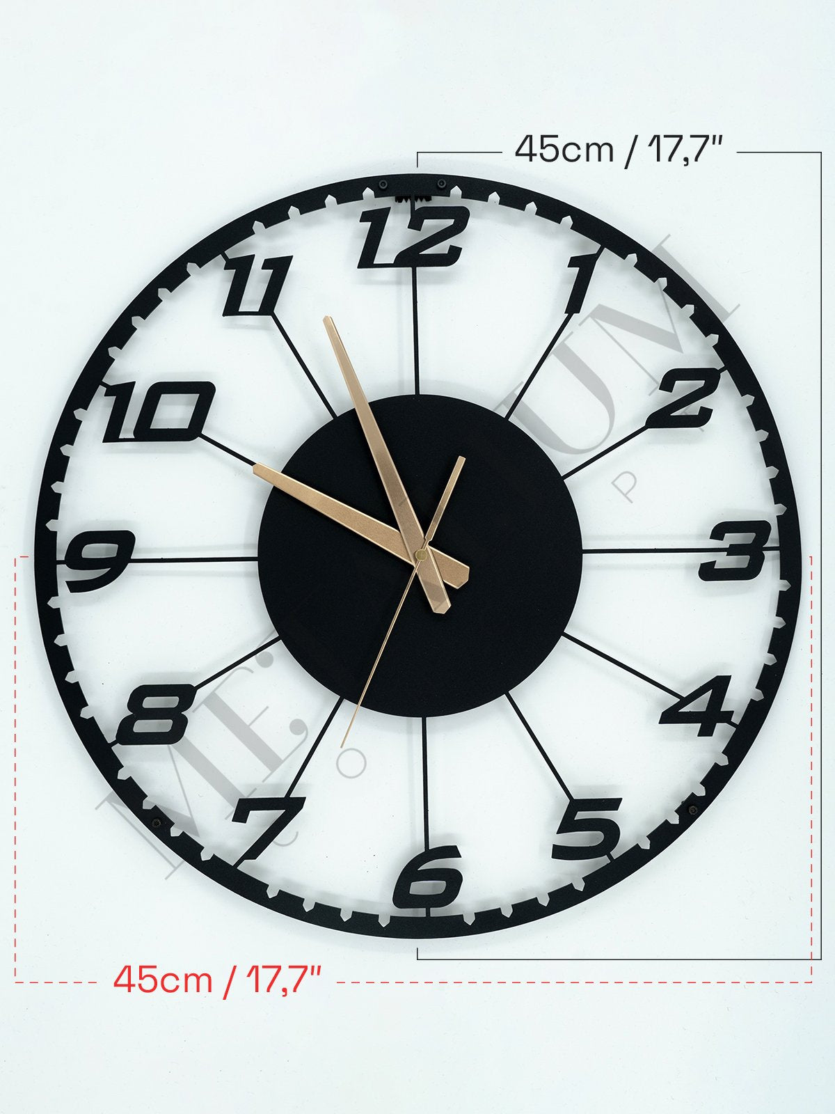 Dekoratif Türkçe Rakamlı Metal Duvar Saati 45x45cm