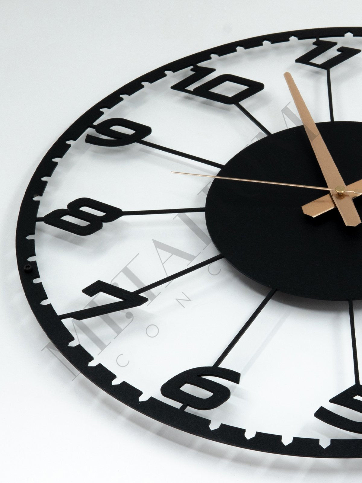 Teknik Detay: 45x45cm 1,5mm çelik sac. Renk mat siyah (Elektrostatik Fırınlı Boya). Askı aparatı ve uzatma vidası sayesinde duvardan 2cm uzakta durmaktadır. Quartz marka akar mekanizmaya sahiptir. (özel ölçü için mesaj atınız.)